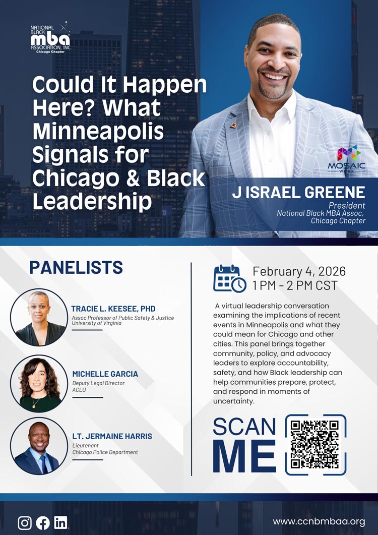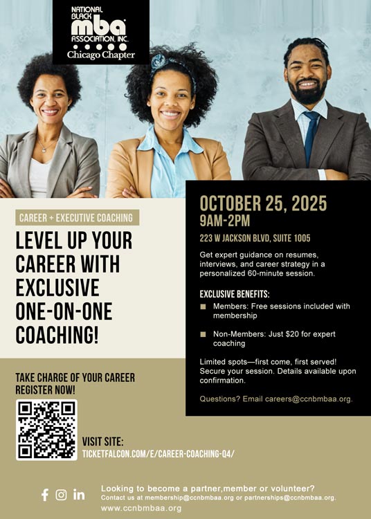 Let us seize this moment to strengthen our chapter’s foundation and lead with purpose. Together, we can transform challenges into opportunities and create a legacy of impact for generations to come. Thank you for your trust, your partnership, and your commitment to The National Black MBA Association Chicago Chapter.